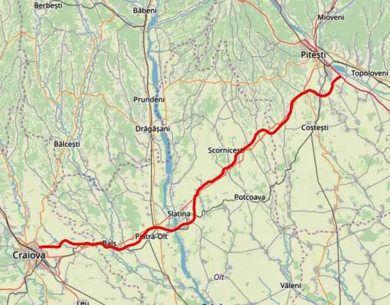 Drumul expres Craiova – Pitești va avea 4 benzi de circulație (2 benzi pe sens) și va ocoli orașele de pe traseu (Balș, Slatina). Spre deosebire de o autostradă, drumul expres nu are bandă de urgență.