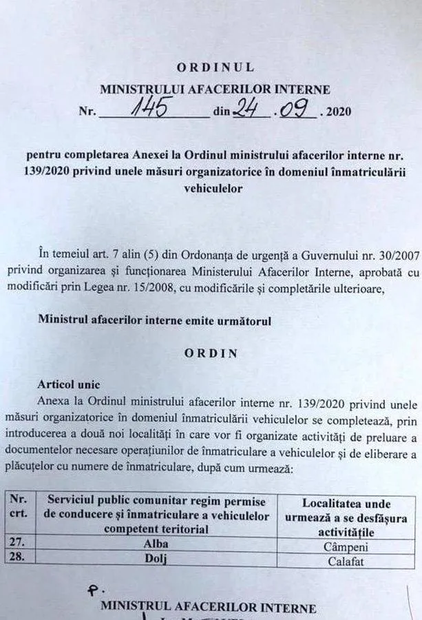 Demersurile făcute nu au rămas fără rezultat: prin Ordinul Ministrului Afacerilor Interne, Marcel Vela, azi, 24.09.2020, s-a emis o anexă ce prevede înfiinţarea, la Calafat, a unui Serviciu public comunitar regim permise de conducere şi înmatriculare a vehiculelor competent teritorial.